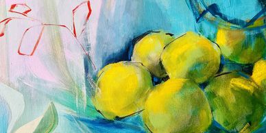 When we met to paint his canvas for the show, I told Jude, “The theme of the show is summertime. Think lemonade & sunshine.”
